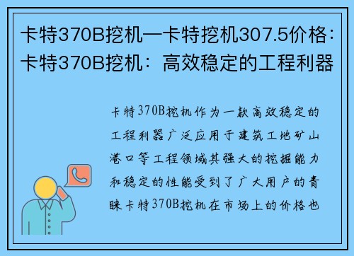 本文将详细阐述卡特329d起不了-卡特320d启动不了的问题,并从以下六个方面进行分析和解决:1.电池问题;2.点火系统问题;3.燃油问题;4.机械故障问题;5.电路问题;6.其他可能原因。最后对卡特329d起不了的问题进行总结归纳。